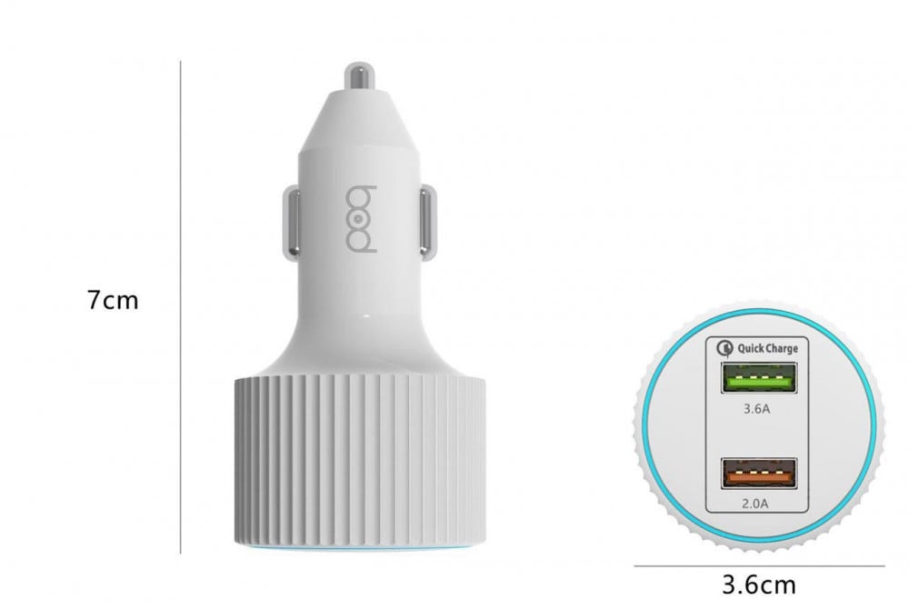 شاحن سيارة سريع بقوة 28 واط من ماركة بود، يوفر شحن أسرع خمس مرات من أجهزة الشحن التقليدية، مع إمكانية شحن جهازين في نفس الوقت ودعم متميز لخاصية الشحن الذكي.